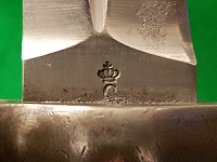 Das Herstellerkennzeichen befindet sich auf der Klinge direkt unter der Parierstange.