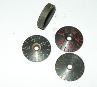 Söderin-Diopter Entfernungseinstellung von 100 bis 600 m Die Einstellscheibe für die Entfernung (oben) gibt es in den Farben Weiß, Gelb, Rot und Grün. Dadurch wird die Ballistik verschiedener Patronen berücksichtigt. Weiß: 143 Grain, "Silver Match", 800 m/s Gelb: 139 Grain, M41, 790 m/s Rot: 139 Grain; "Falt Torped", 830 m/s Grün: 139 Grain, Spitzer Boattail, 850 m/s Zum Schutz des Söderin-Diopters gibt es eine schwarze Plastik-Abdeckung | |