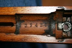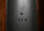 Auch im folgenden Bild stimmen die drei Endziffern überein. Bemerkenswert ist allerdings, dass hier an ein und dergleichen Waffe offenbar drei verschiedene Schlagwerkzeuge verwendet wurden. Beachten Sie die unterschiedliche Schreibweise der einzelnen Ziffern. Natürlich kam es vor, dass bei einer offiziellen Inspektion einer Waffe auch mal ein Teil ausgetauscht und dann (mit anderem Schlagwerkzeug als dem originalem) erneut nummeriert wurde. Das ist eine bekannte Tatsache und nichts, was Besorgnis hervorrufen sollte.