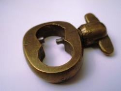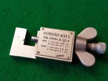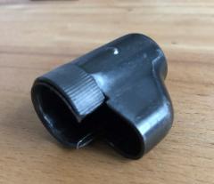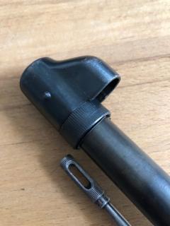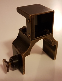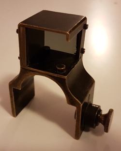 | Riktkontrollspegel Dieses Prisma aus Messing diente in der Rekrutenausbildung dazu, dass der Ausbilder seitlich neben dem zielenden Rekruten stehend, die Visierlinie kontrollieren konnte. Der Riktkontrollspegel wurde dazu von oben auf die Systemhülse geschoben und mittels einer Schraube fixiert. |