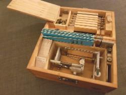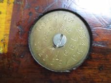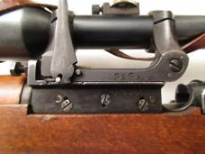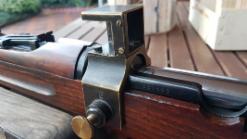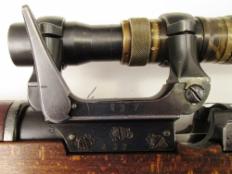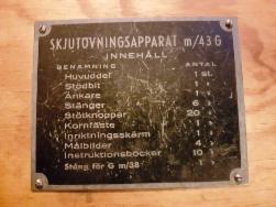 | Zielübungsgerät ALMINA Skjutövningsapparat m/43 G Das Zielübungsgerät diente der Simulation des Zielens und der Schussabgabe auf eine Entfernung von 300m. Es besteht aus einer auf den Lauf aufsetzbaren Visiereinrichtung mit einer Nadel, die bei Schussabgabe in eine Zielscheibe aus Pappe sticht. Mit diversen Aufnahmgestängen und Laufstangen wurde das Gerät am Gewehr angebracht. |
