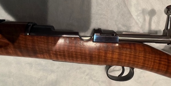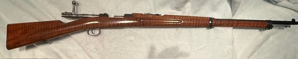 An der Unterseite der Schulterstütze ist statt den üblichen schwedischen Inspektionsstempeln lediglich die Abkürzung "GP" zu finden. Es lässt vermuten, dass es sich um die Initialen des Waffenoffiziers handelt, der dieses Gewehr als Meisterstück hergestellt hat. Leider sind die Initialen "GP" keinem bekannten Waffenoffizier zuzuordnen.