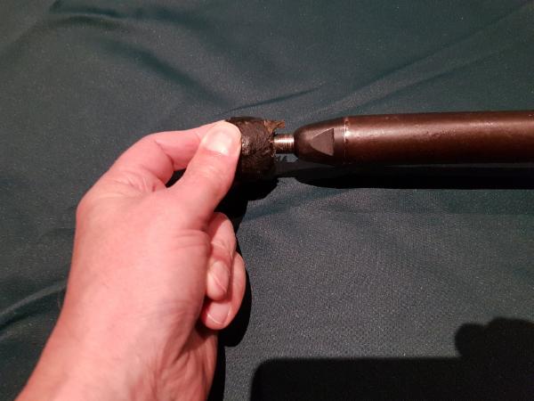 vordere Teil des Übungsgewehrs ist mit einem federgelagerten Stab